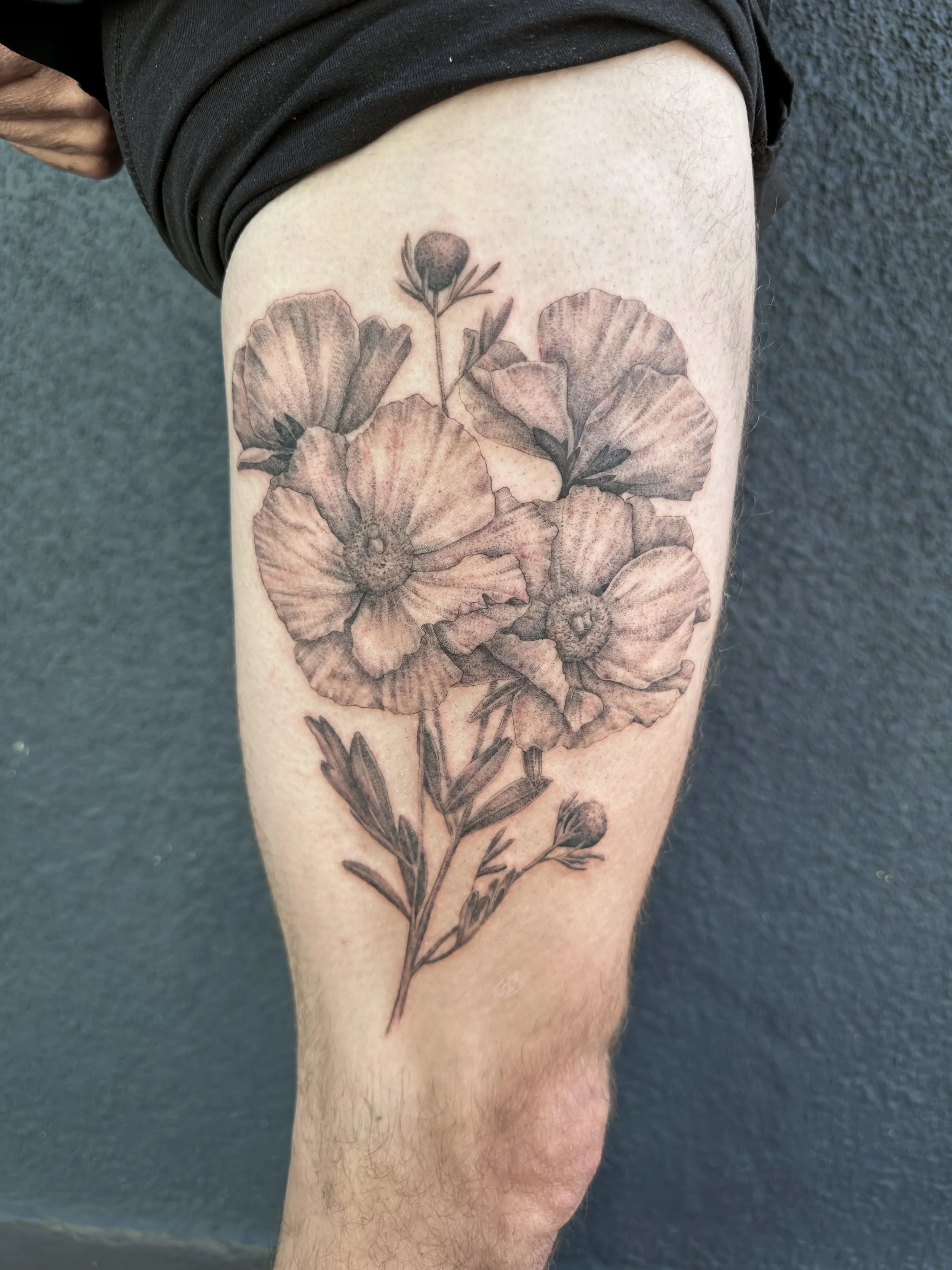 “I am over the moon about my tattoo experience with Hannah. The beautiful flower I got is a flash concept of hers that I found myself immediately drawn to. She executed the vision with incredible skill and attentiveness. I felt heard and cared for the whole time. I'll remember the process with fondness and delight in the result every time I look on it. I'd add more stars if that were an option.”